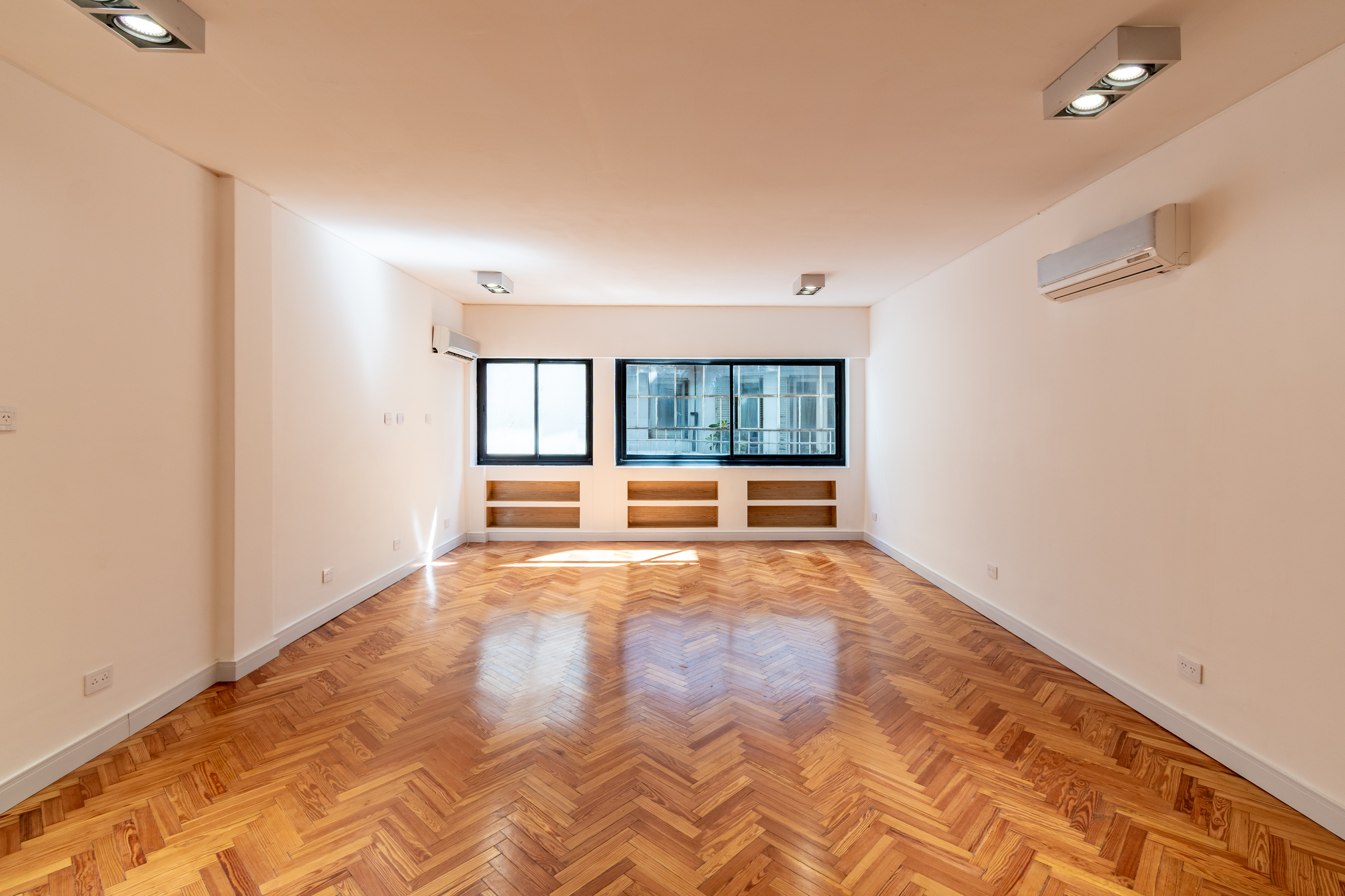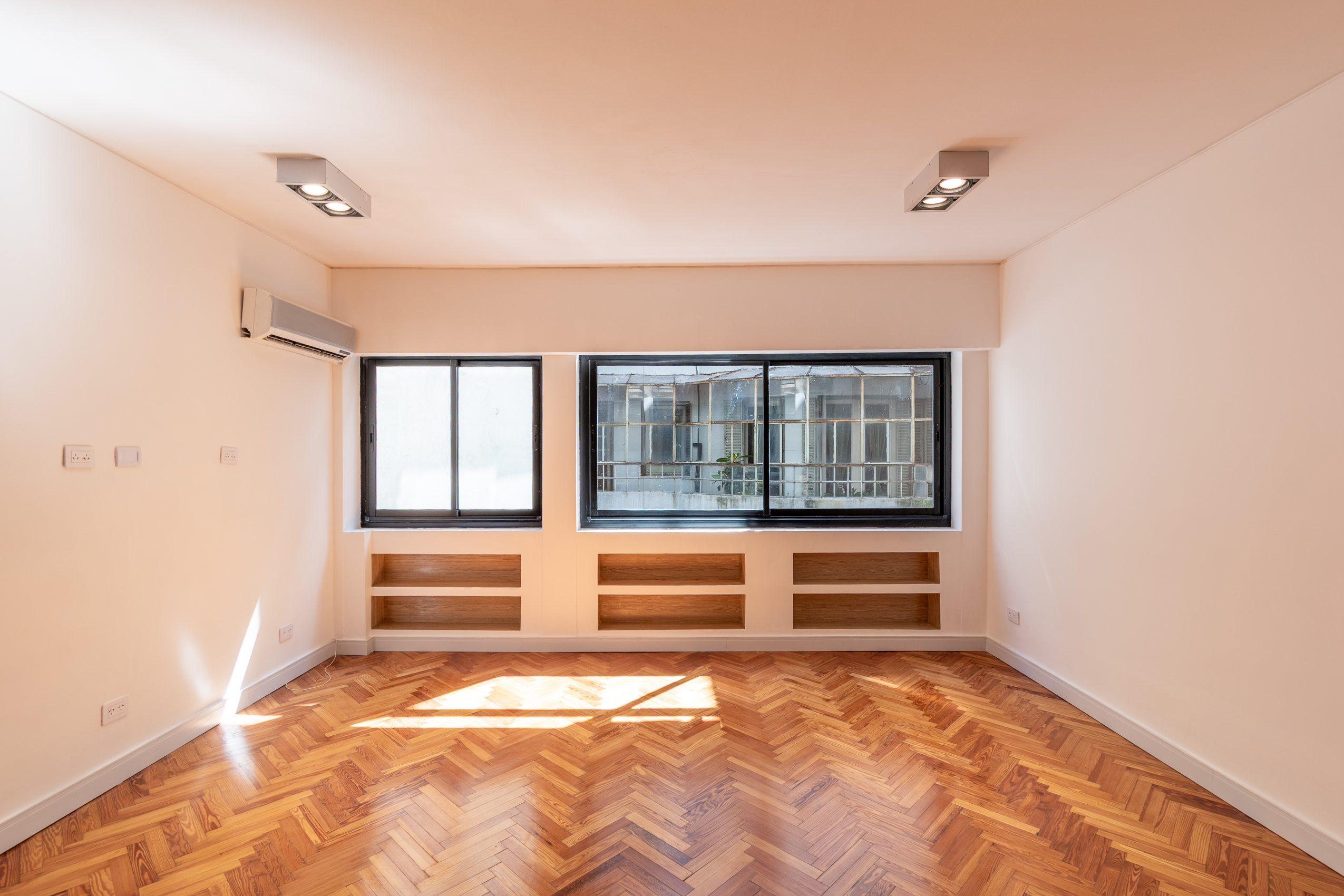 Ambiente divisible de de 6,80 x 4,40 metros, con dos ventanales.